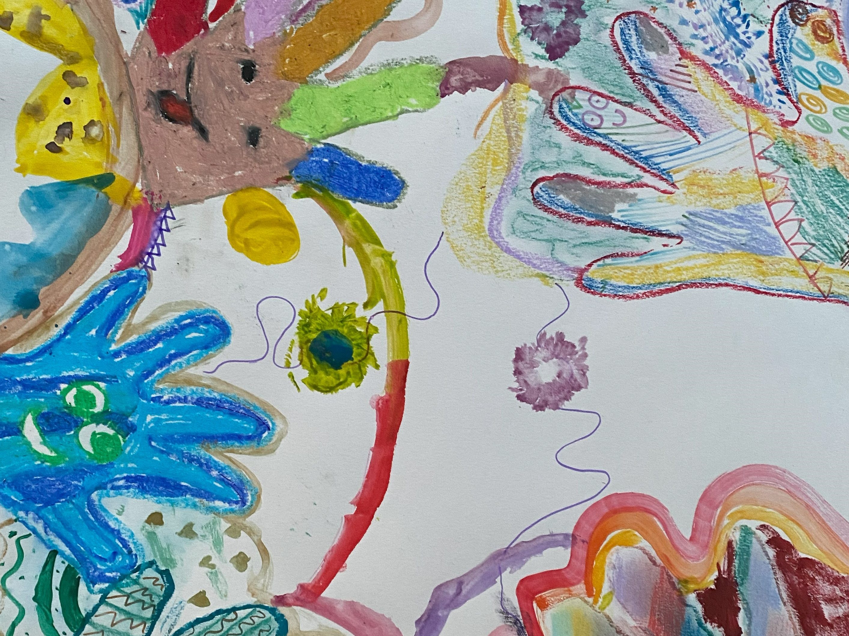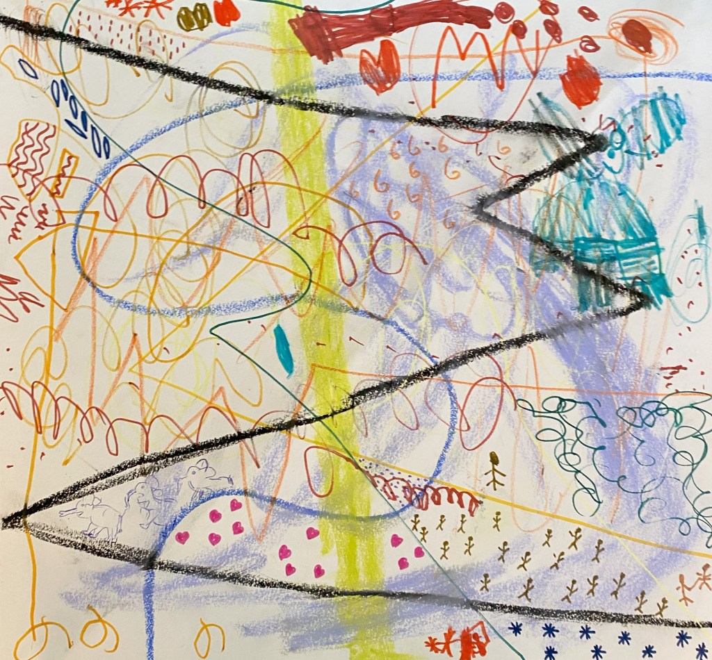 We luisteren naar verschillende ritmes en soorten van muziek en zetten deze op papier. Dit doen we afwisselend met tekengerief en verf.