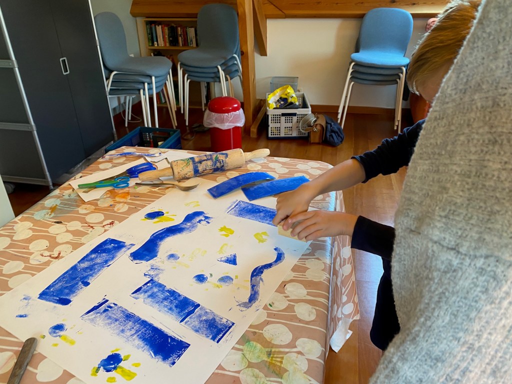 Je kan kiezen uit schilderen en tekenen op muziek/ eenvoudig drukken/ creatief lijnenspel.