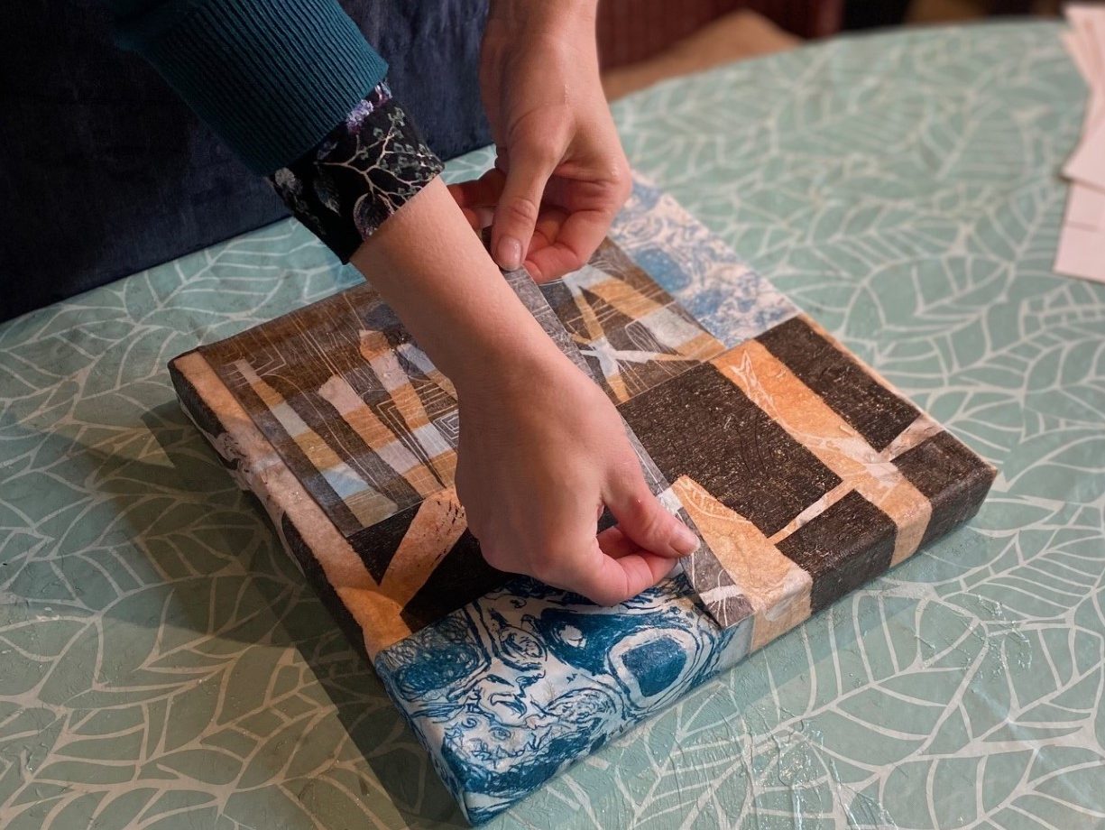 Door het samensmelten van deze technieken ontstaat een nieuw samengesteld werk dat verschillende texturen, lijnen en dieptes in zich draagt.